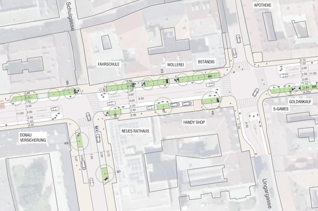Die "Siebzehner" – eine alte Bundesstraße – führt seit Jahrzehnten mitten durch Wiener Neustadt. Jetzt ist es Zeit für einen Bedeutungswandel, hin zu einem begrünten Boulevard mit breiten Gehsteigen und Radverkehrsanlagen. Wir arbeiten mit D\D Landschaftsplanung an einem Generellen Projekt, welches im Juni den Bürger:innen in einem ersten Entwurf präsentiert wurde.