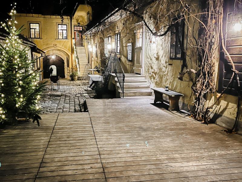 Danach ließen wir den Weihnachtsfeierabend gemütlich beim Heurigen mit Semmelknödel und Bratäpfeln ausklingen.