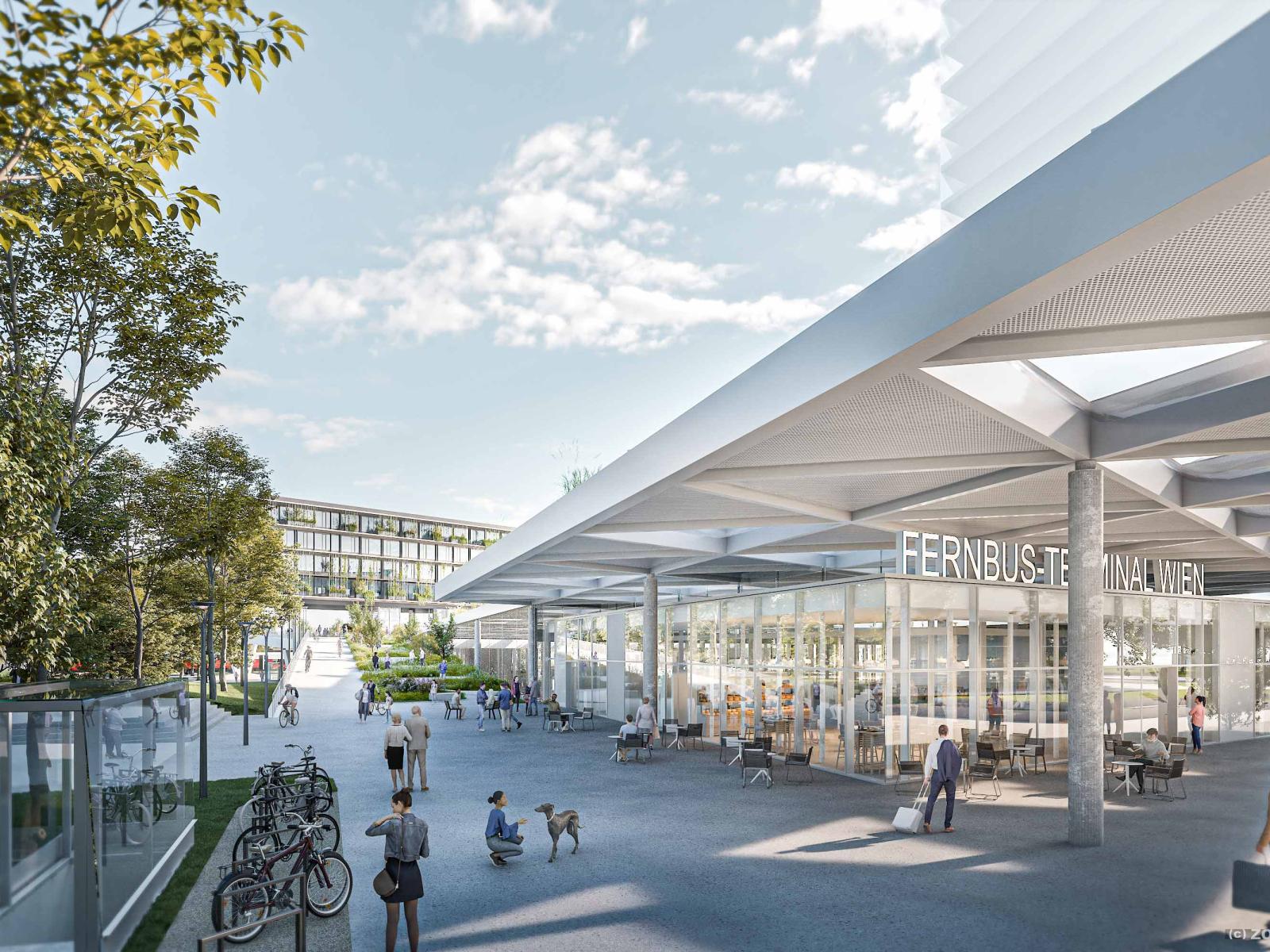 Nach einer umfangreichen Standortsuche, für die uns die Stadt Wien 2014 beauftragt hatte, starteten 2017 die Planungen für einen Fernbusterminal am Handelskai südöstlich des Stadion Centers. Die Bauarbeiten haben 2025 begonnen, die Inbetriebnahme ist 2029 vorgesehen.