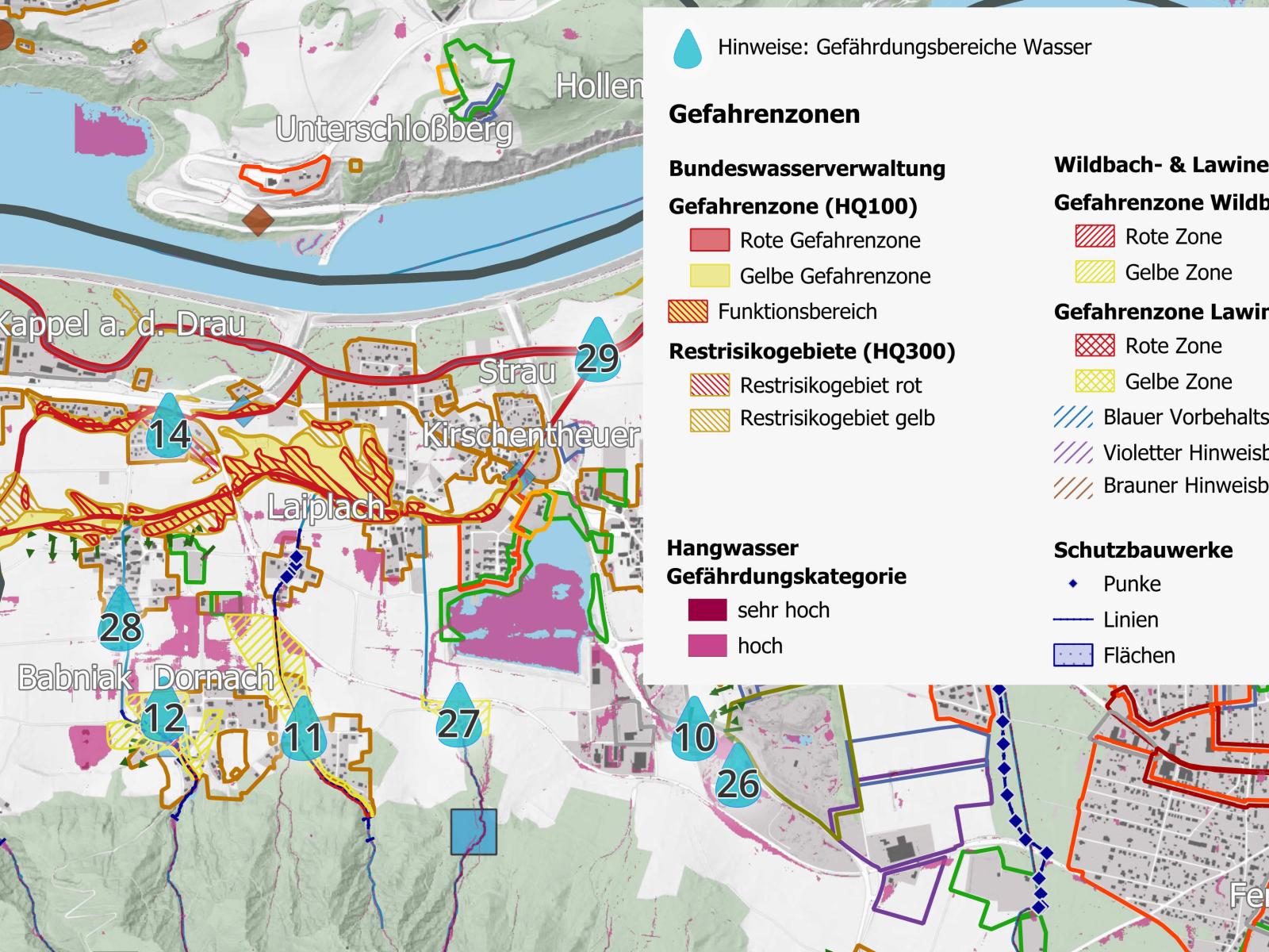 Auf Gemeindeebene haben wir hitzegefährdete Bereiche sowie Gebiete, die von Starkregen und Hangwasser, Überflutung oder anderen Naturgefahren besonders gefährdet sind, identifiziert und verortet. Für jede Gemeinde gibt es nun einen eigenen Aktionsplan – inklusive einer verständlich aufbereiteten Darstellung der klimatischen Ausgangssituation, umfangreiches Kartenmaterial und konkrete Maßnahmen zu unterschiedlichen Themen.